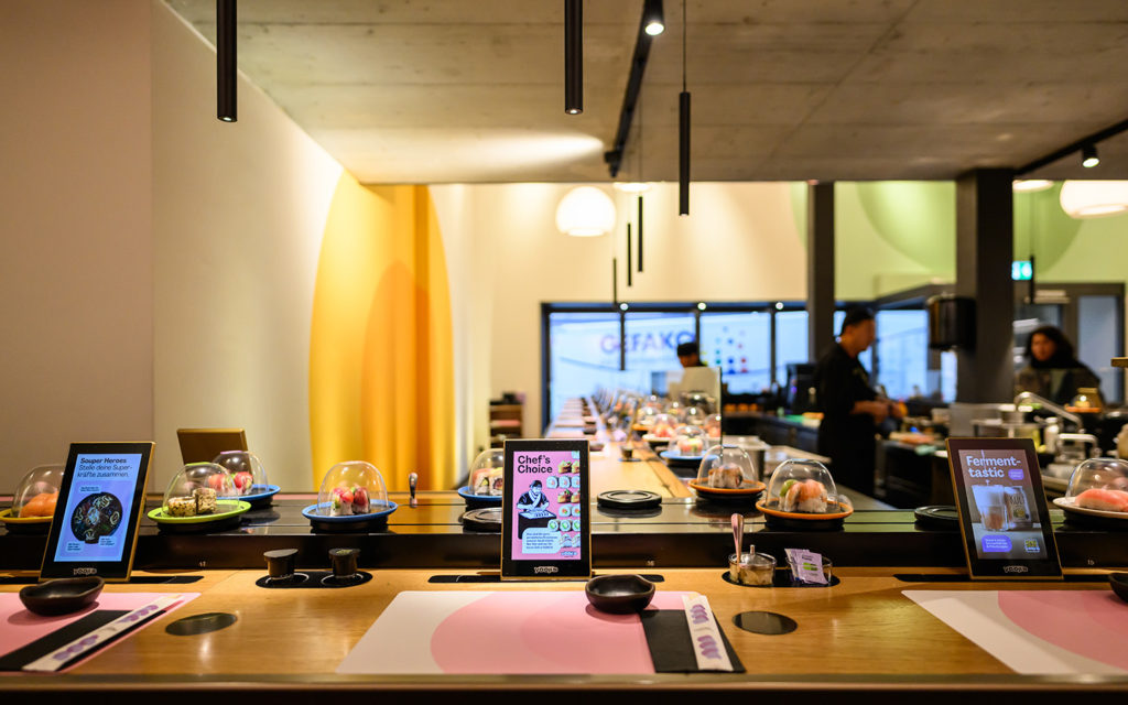 Das Yooji‘s Bellevue ist nur wenige Schritte von der Tramhaltestelle Bellevue, vom Bahnhof Stadelhofen und vom Zürichsee entfernt. Im Erdgeschoss bietet das zweistöckige Restaurant einen grossen Kaiten-Bereich (Sushi-Laufband) mit Bildschirmen zum Bestellen, Informieren und Surfen an jedem Platz. Das Obergeschoss präsentiert sich als gemütlichen „Order & Pay“ Bereich in welchem unkompliziert am Tisch bestellt und direkt bezahlt werden kann.