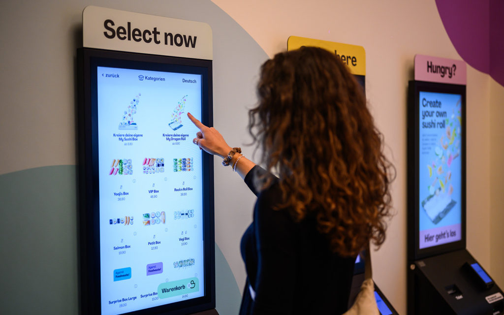 Yooji’s Bellevue is just a few steps away from the Bellevue tram stop, Stadelhofen train station, and Lake Zurich. On the ground floor, the two-story restaurant offers a large kaiten area (sushi conveyor belt) with screens for ordering, information, and surfing at every seat. The upper floor is a cozy “order & pay” area where you can easily order at your table and pay directly.